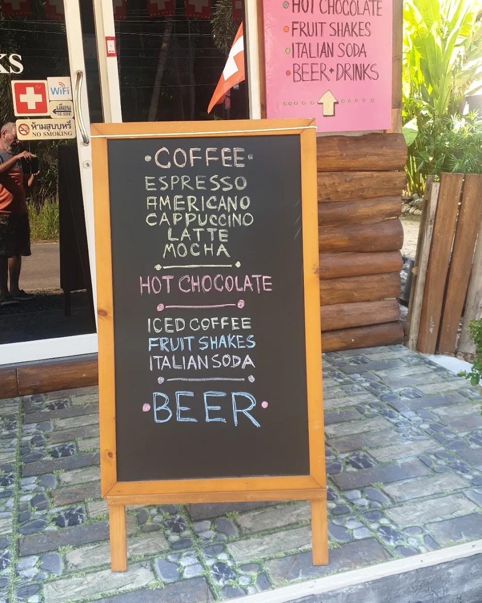 Welcome to Swiss Coffee Shop บีแอนด์บี, nestled in the charming surroundings of Ban OK, Phru Nai. This delightful café is a hidden gem on the beautiful island, renowned for its exceptional coffee and friendly atmosphere.